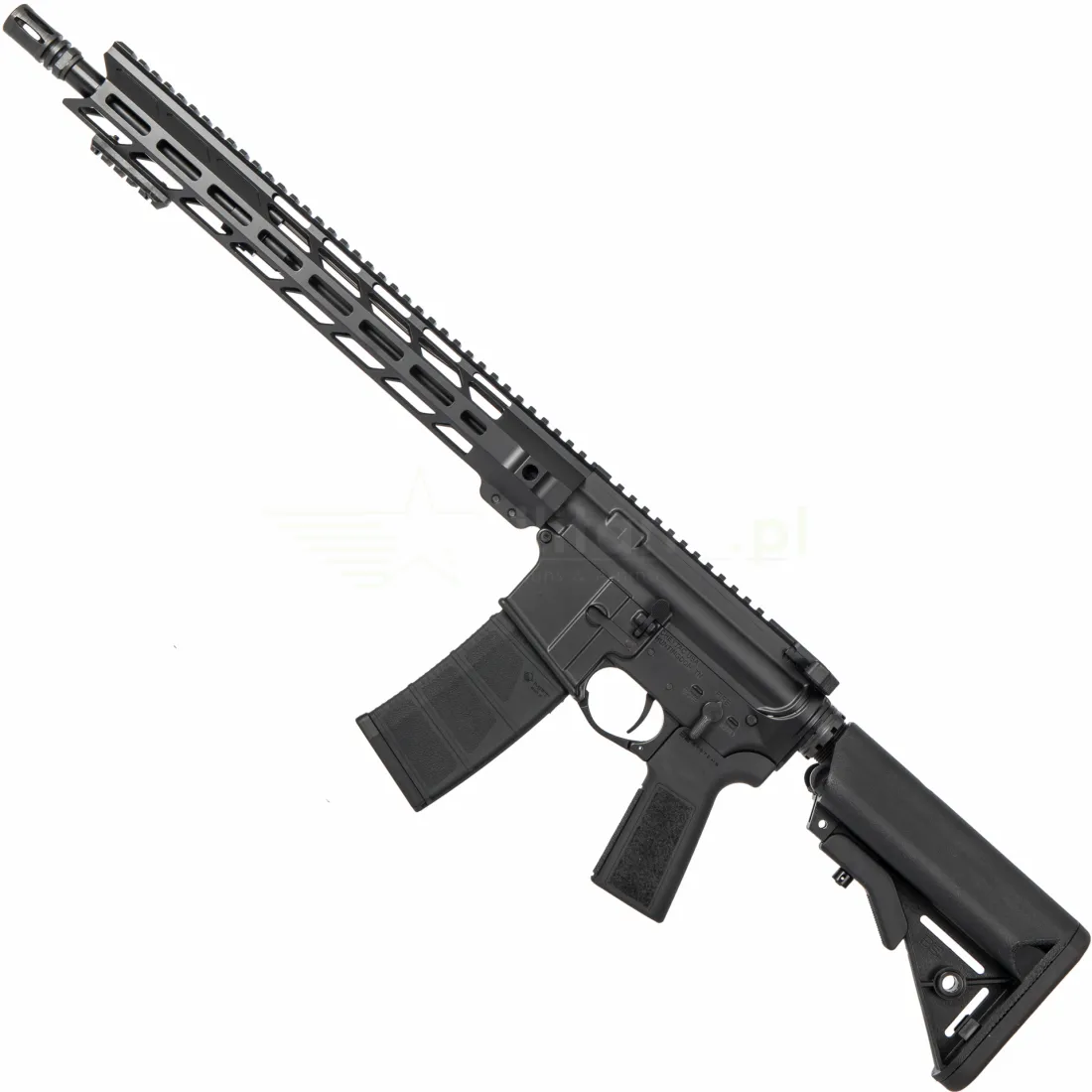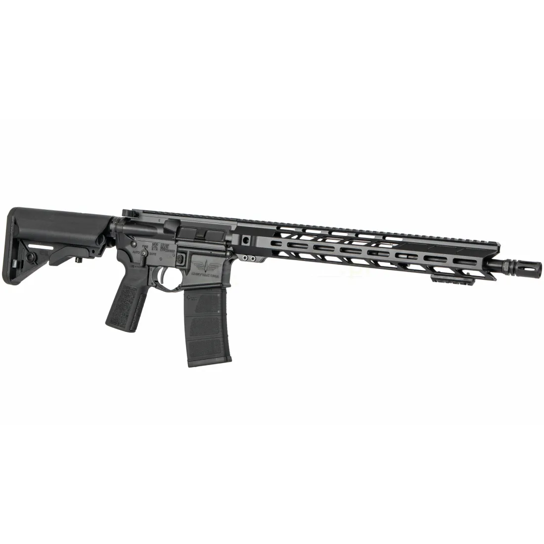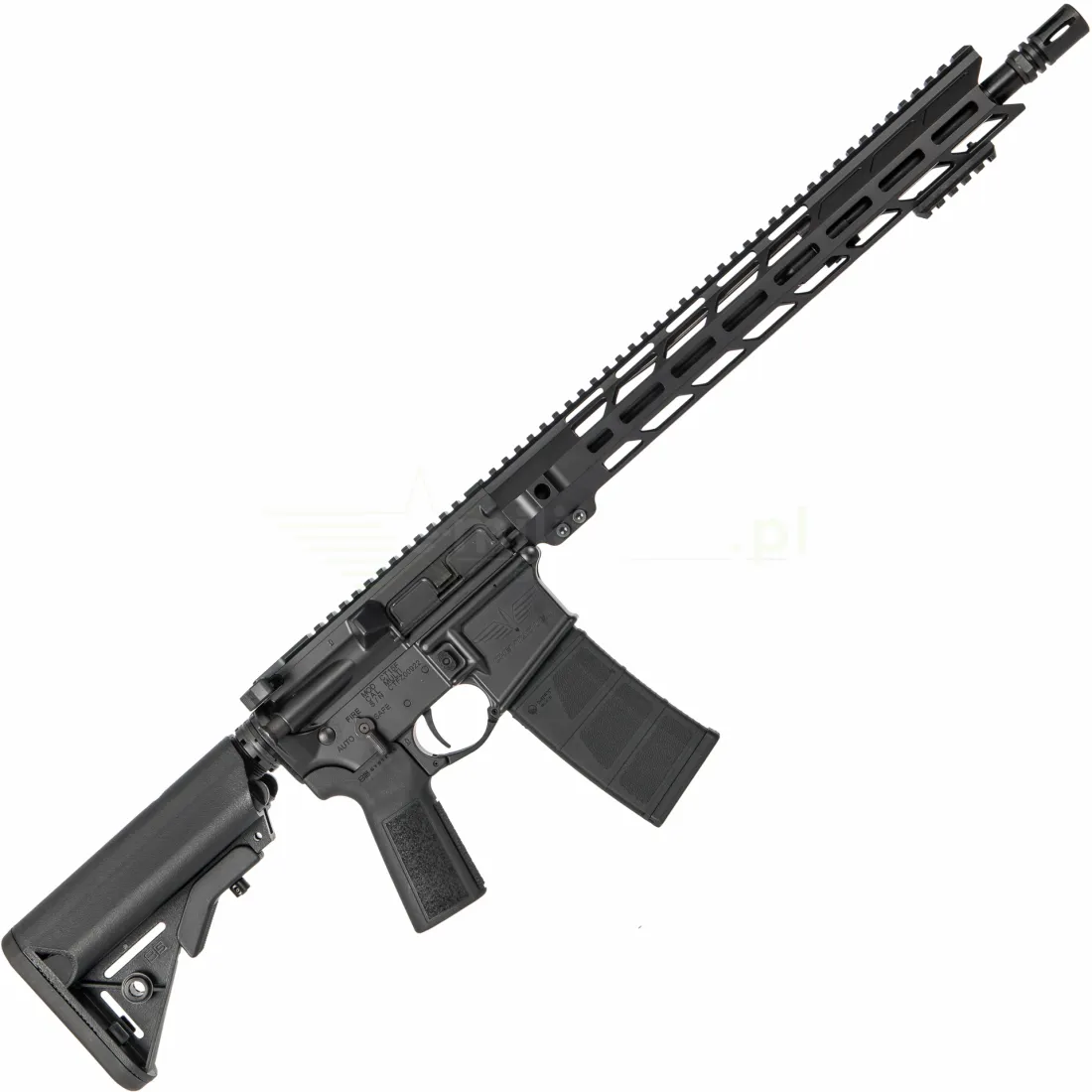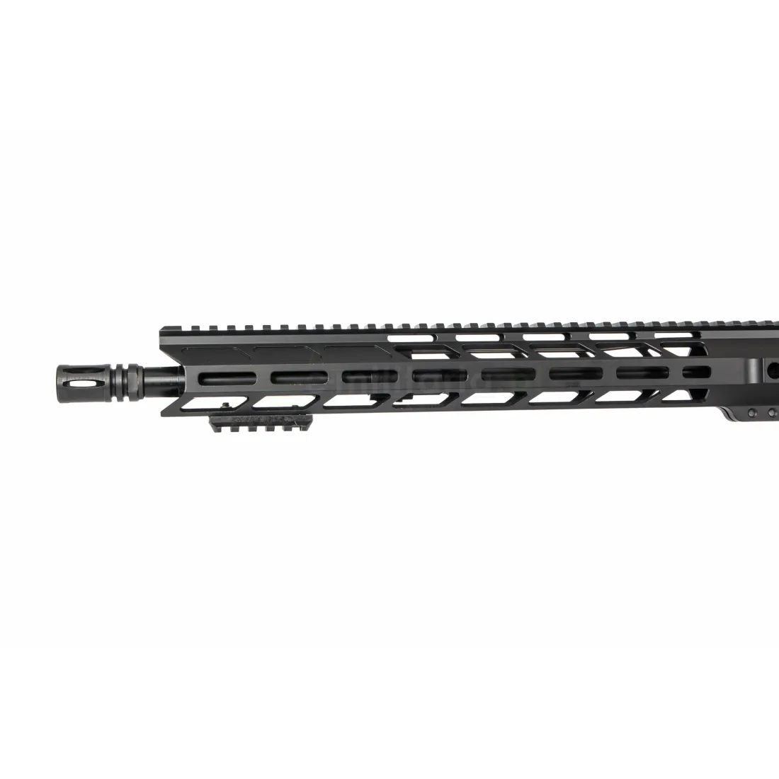 Karabin został wyposażony w wysokiej klasy zespół suwadła typu Full Auto Cut & Rated BCG, z odpowiednio zakutym kluczem gazowym (properly staked), co przekłada się na bezawaryjne działanie oraz długowieczność. To komponent, który sprosta nawet najbardziej intensywnemu użytkowaniu, zarówno w zastosowaniach sportowych, jak i taktycznych. Całość uzupełnia łoże w systemie M-LOK, frezowane z aluminium 6061-T6. Dzięki precyzyjnej obróbce CNC łoże charakteryzuje się wysoką sztywnością i niską masą, a system M-LOK umożliwia łatwą rozbudowę broni o akcesoria – chwyty przednie, latarki czy wskaźniki laserowe. Zintegrowane punkty QD pozwalają na szybki montaż zawieszeń taktycznych.