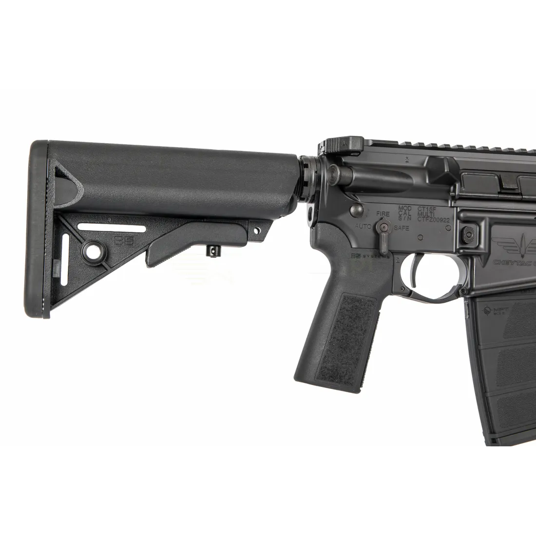 Dla zapewnienia maksymalnej wygody strzelania CT15FTIM UPGRADED został wyposażony w 6-pozycyjną kolbę B5 Systems Enhanced SOPMOD. Kolba ta oferuje stabilne oparcie, ergonomiczny kształt i wbudowane gniazdo QD. W zestawie znajduje się także chropowaty chwyt pistoletowy B5 Systems, który zapewnia pewny chwyt nawet w trudnych warunkach – np. w deszczu lub w rękawicach taktycznych. Broń standardowo zasilana jest z 30-nabojowego magazynka, kompatybilnego z platformą AR-15.