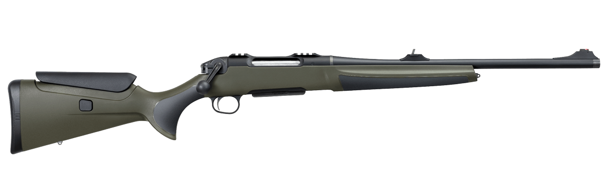Syntetyczna kolba zbliżona do kolby robionej na wymiar, która ma decydujący wpływ na trafienie. Kompozytowa wersja innowacyjnego karabinu Jaeger NXT z zamkiem ślizgowym o prostym ciągu ma dynamiczną syntetyczną kolbę, którą można idealnie dopasować do ergonomii myśliwego. Poprawia to zatrzymanie i bezpieczny strzał. Dynamiczny oznacza: kolbę z regulacją wysokości za pomocą przycisku, rozsuwaną kolbę i nowy typ geometrii przedramienia z wtryskiwanymi elementami soft-touch. Solidny system zamka ślizgowego o prostym ciągu z prawdziwym, bezpiecznym ręcznym systemem naciągu sprawdził się.
